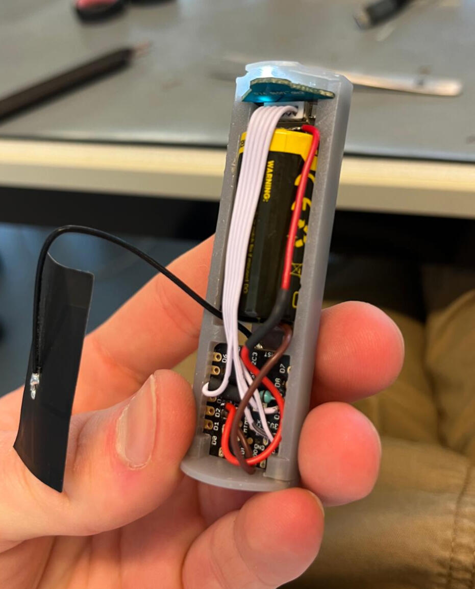 The pager was designed to solve a problem for the Design Lab staff. To open the door at night, a client would need to ring the bell, which would notify the staff to open the lock manually. This was problematic since staff members weren't often near or even in earshot of the doorbell and release button. Clients would need to ring multiple times in order to gain access.To solve this, I designed Pager. Named after the small notification devices used throughout the 70s-90s. It emits a beep and a flash of light when a client rings the bell. The staff member can then press a button on the top of the device to let the client into the building remotely.The Pager featured a lithium-ion cell powering an ESP32. As well as a base station that stores and charges the device before the next night shift.